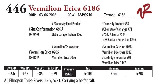 All bulls will be covered 50% by Vermilion Ranch if they are injured during their first breeding season. Breeding season is defined as the 60-day period following the first turnout of bulls.