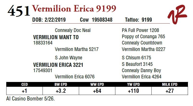 All bulls will be covered 50% by Vermilion Ranch if they are injured during their first breeding season. Breeding season is defined as the 60-day period following the first turnout of bulls.