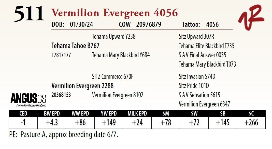 All bulls will be covered 50% by Vermilion Ranch if they are injured during their first breeding season. Breeding season is defined as the 60-day period following the first turnout of bulls.