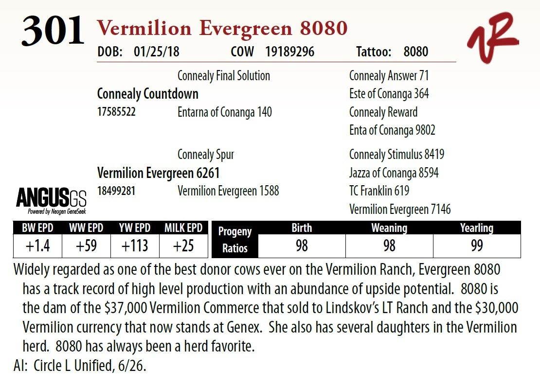 All bulls will be covered 50% by Vermilion Ranch if they are injured during their first breeding season. Breeding season is defined as the 60-day period following the first turnout of bulls.