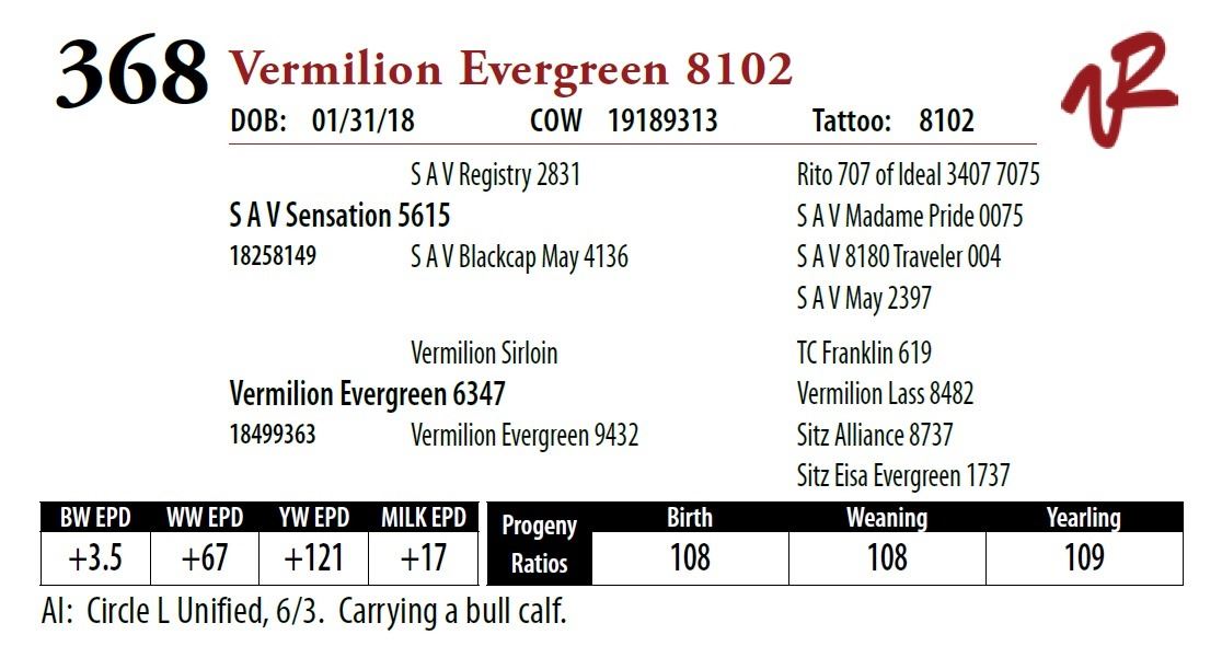 All bulls will be covered 50% by Vermilion Ranch if they are injured during their first breeding season. Breeding season is defined as the 60-day period following the first turnout of bulls.