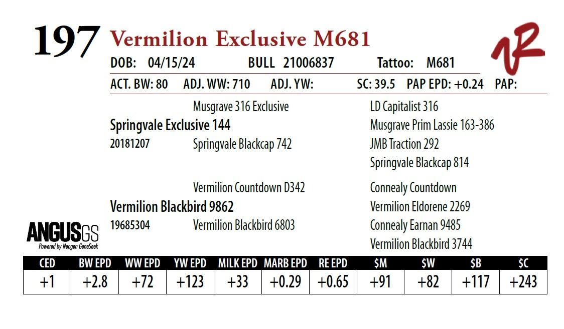All bulls will be covered 50% by Vermilion Ranch if they are injured during their first breeding season. Breeding season is defined as the 60-day period following the first turnout of bulls.