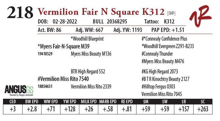 All bulls will be covered 50% by Vermilion Ranch if they are injured during their first breeding season. Breeding season is defined as the 60-day period following the first turnout of bulls.