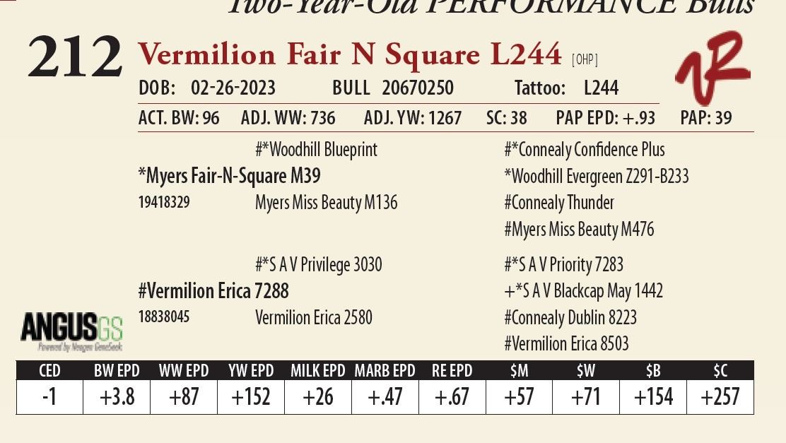 All bulls will be covered 50% by Vermilion Ranch if they are injured during their first breeding season. Breeding season is defined as the 60-day period following the first turnout of bulls.