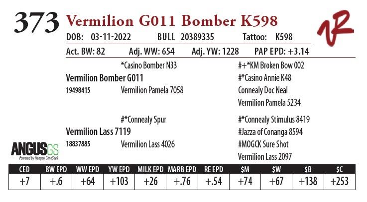 All bulls will be covered 50% by Vermilion Ranch if they are injured during their first breeding season. Breeding season is defined as the 60-day period following the first turnout of bulls.