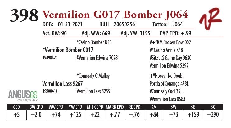 All bulls will be covered 50% by Vermilion Ranch if they are injured during their first breeding season. Breeding season is defined as the 60-day period following the first turnout of bulls.