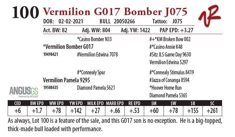 All bulls will be covered 50% by Vermilion Ranch if they are injured during their first breeding season. Breeding season is defined as the 60-day period following the first turnout of bulls.