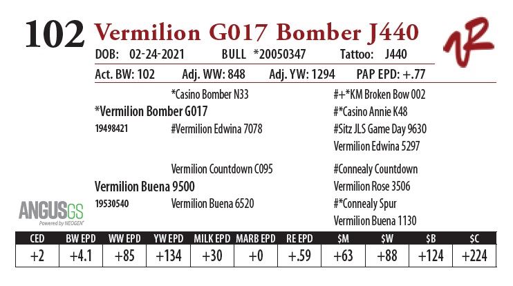 All bulls will be covered 50% by Vermilion Ranch if they are injured during their first breeding season. Breeding season is defined as the 60-day period following the first turnout of bulls.