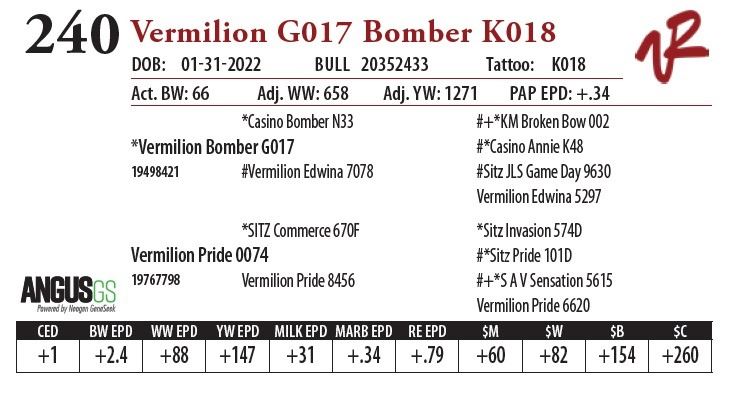 All bulls will be covered 50% by Vermilion Ranch if they are injured during their first breeding season. Breeding season is defined as the 60-day period following the first turnout of bulls.