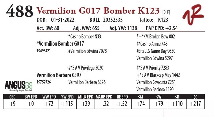 All bulls will be covered 50% by Vermilion Ranch if they are injured during their first breeding season. Breeding season is defined as the 60-day period following the first turnout of bulls.