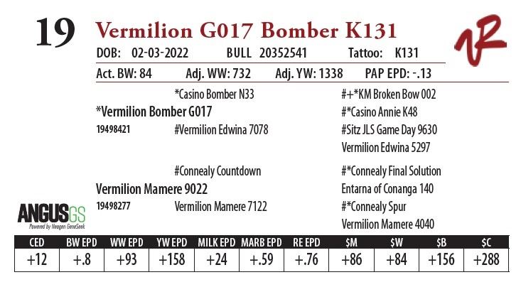 All bulls will be covered 50% by Vermilion Ranch if they are injured during their first breeding season. Breeding season is defined as the 60-day period following the first turnout of bulls.
