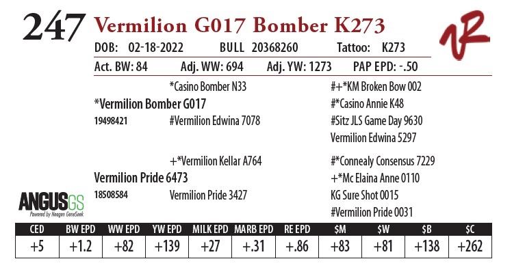 All bulls will be covered 50% by Vermilion Ranch if they are injured during their first breeding season. Breeding season is defined as the 60-day period following the first turnout of bulls.