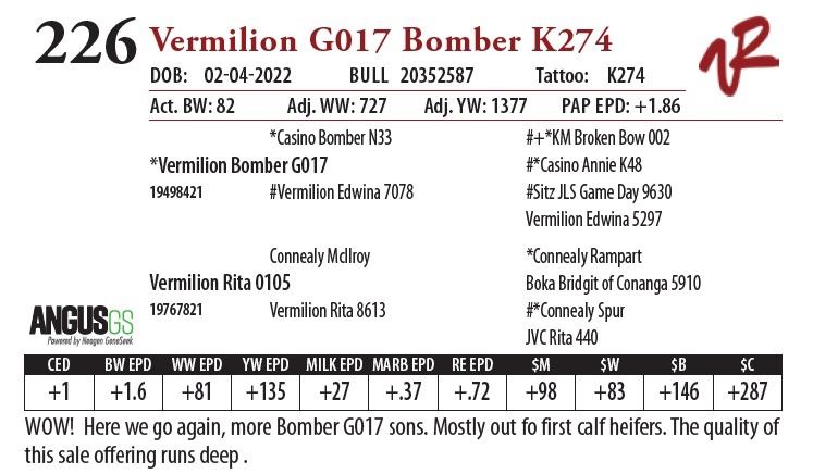 All bulls will be covered 50% by Vermilion Ranch if they are injured during their first breeding season. Breeding season is defined as the 60-day period following the first turnout of bulls.