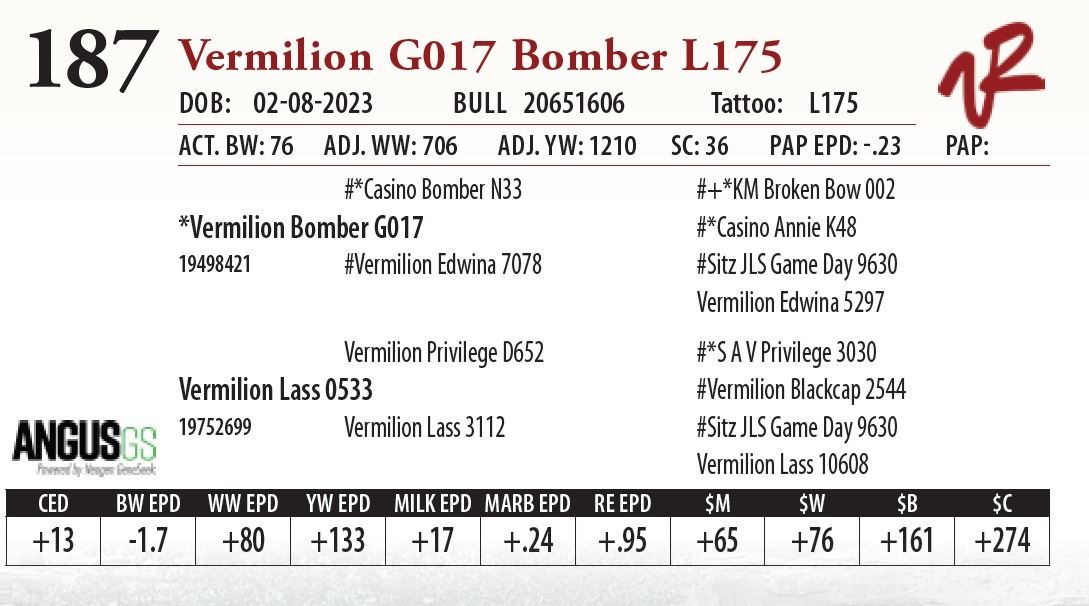 All bulls will be covered 50% by Vermilion Ranch if they are injured during their first breeding season. Breeding season is defined as the 60-day period following the first turnout of bulls.