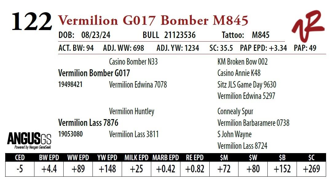 All bulls will be covered 50% by Vermilion Ranch if they are injured during their first breeding season. Breeding season is defined as the 60-day period following the first turnout of bulls.