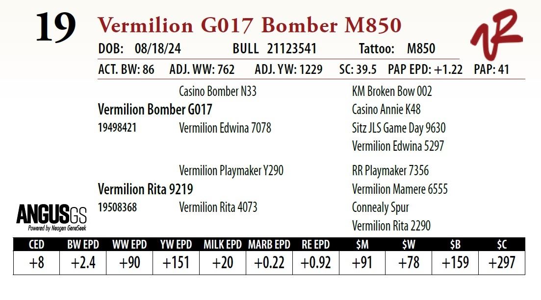 All bulls will be covered 50% by Vermilion Ranch if they are injured during their first breeding season. Breeding season is defined as the 60-day period following the first turnout of bulls.