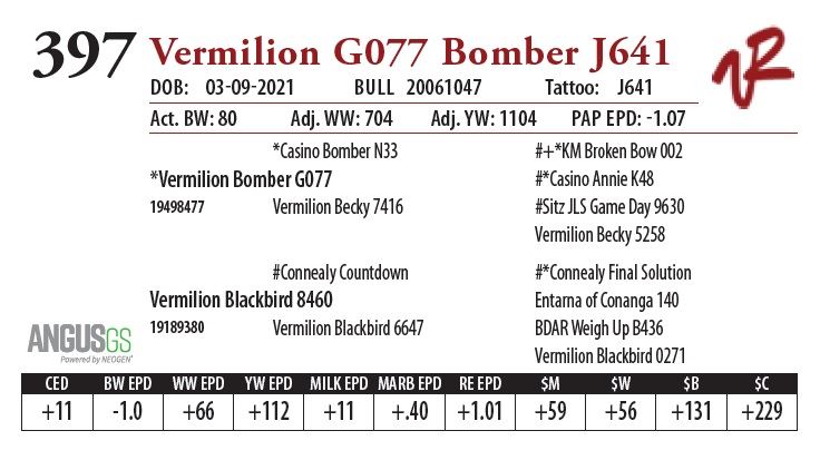 All bulls will be covered 50% by Vermilion Ranch if they are injured during their first breeding season. Breeding season is defined as the 60-day period following the first turnout of bulls.