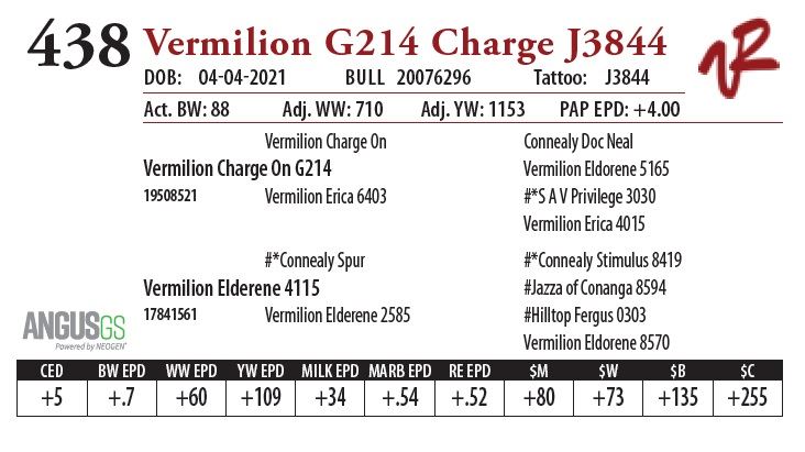 All bulls will be covered 50% by Vermilion Ranch if they are injured during their first breeding season. Breeding season is defined as the 60-day period following the first turnout of bulls.