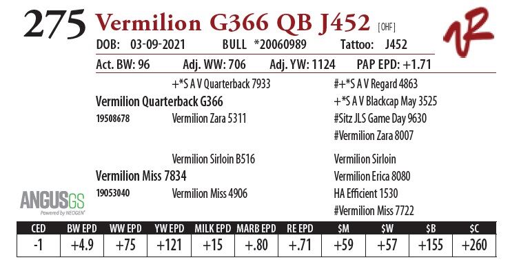 All bulls will be covered 50% by Vermilion Ranch if they are injured during their first breeding season. Breeding season is defined as the 60-day period following the first turnout of bulls.
