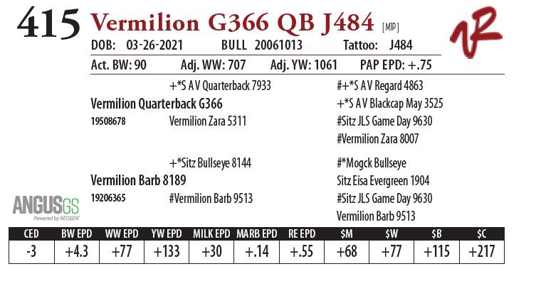 All bulls will be covered 50% by Vermilion Ranch if they are injured during their first breeding season. Breeding season is defined as the 60-day period following the first turnout of bulls.