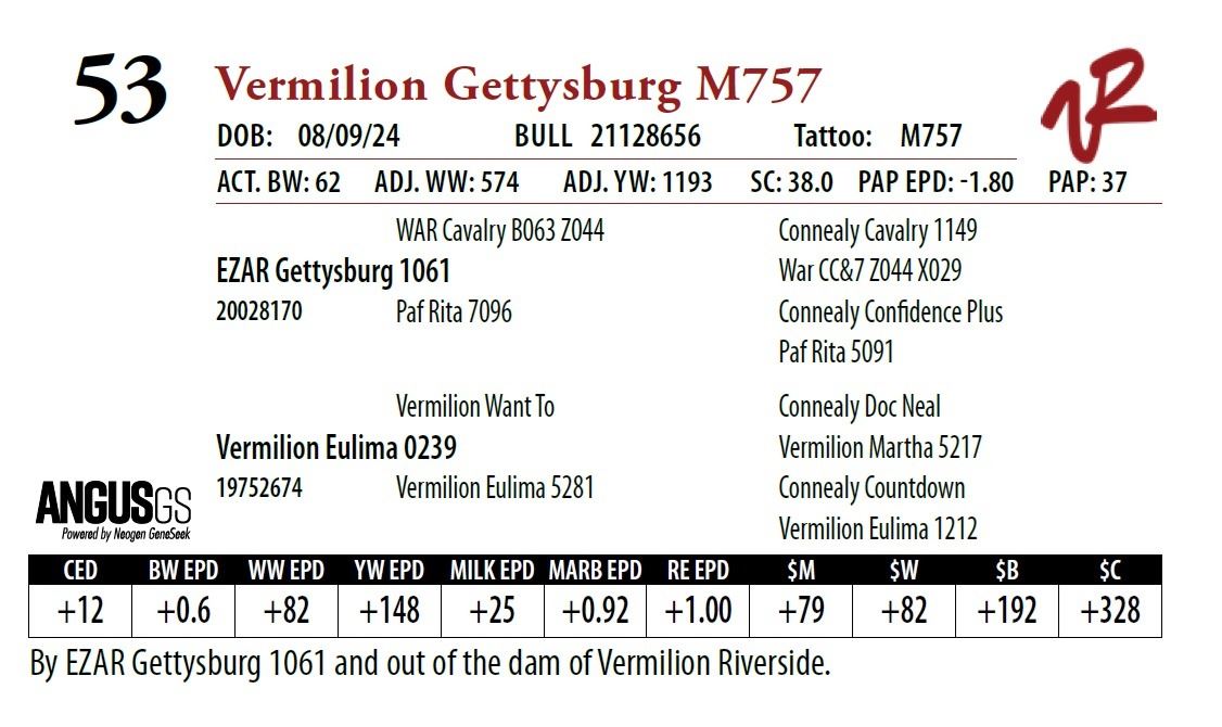 All bulls will be covered 50% by Vermilion Ranch if they are injured during their first breeding season. Breeding season is defined as the 60-day period following the first turnout of bulls.