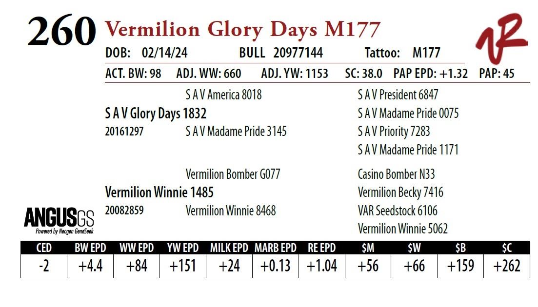 All bulls will be covered 50% by Vermilion Ranch if they are injured during their first breeding season. Breeding season is defined as the 60-day period following the first turnout of bulls.