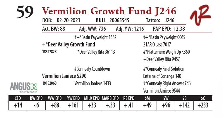 All bulls will be covered 50% by Vermilion Ranch if they are injured during their first breeding season. Breeding season is defined as the 60-day period following the first turnout of bulls.