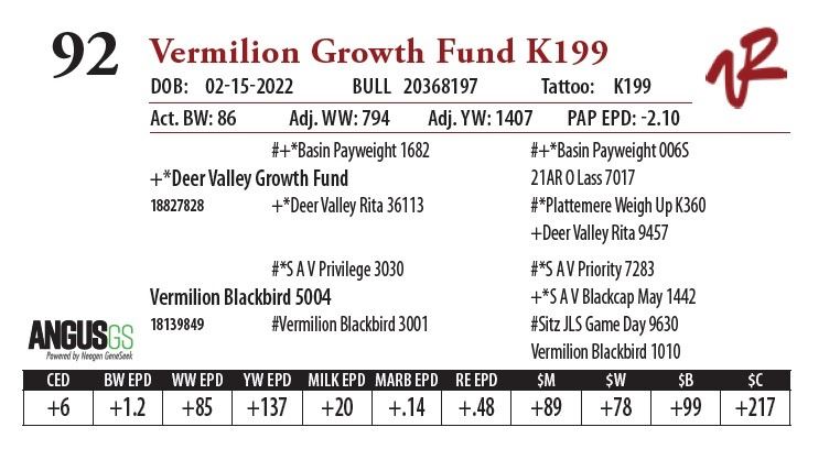 All bulls will be covered 50% by Vermilion Ranch if they are injured during their first breeding season. Breeding season is defined as the 60-day period following the first turnout of bulls.