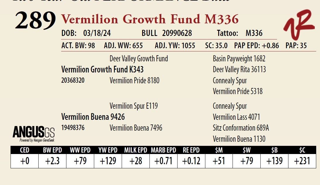 All bulls will be covered 50% by Vermilion Ranch if they are injured during their first breeding season. Breeding season is defined as the 60-day period following the first turnout of bulls.