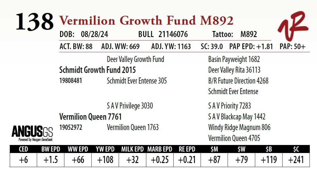 All bulls will be covered 50% by Vermilion Ranch if they are injured during their first breeding season. Breeding season is defined as the 60-day period following the first turnout of bulls.