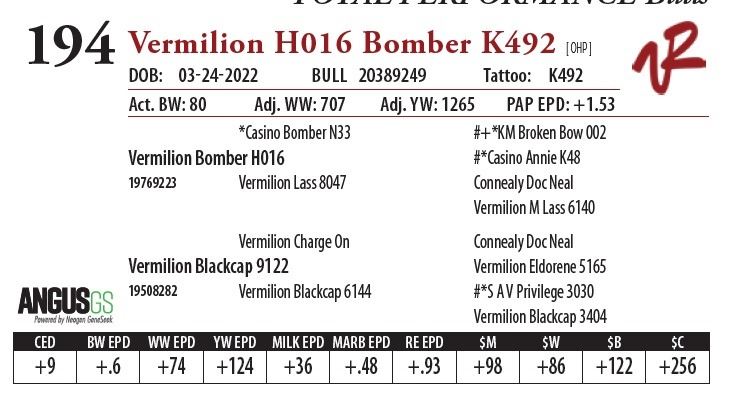 All bulls will be covered 50% by Vermilion Ranch if they are injured during their first breeding season. Breeding season is defined as the 60-day period following the first turnout of bulls.