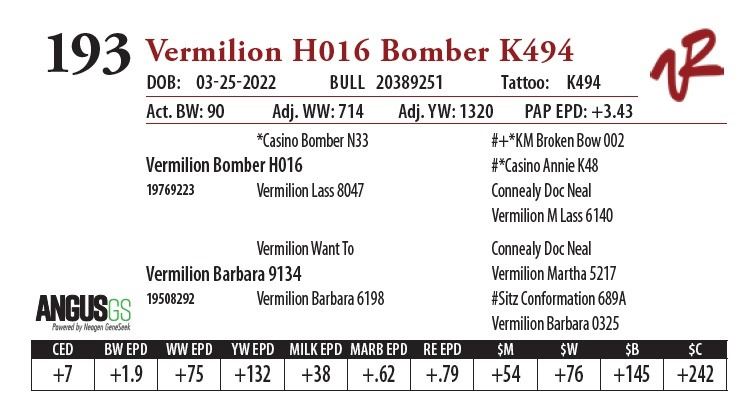 All bulls will be covered 50% by Vermilion Ranch if they are injured during their first breeding season. Breeding season is defined as the 60-day period following the first turnout of bulls.