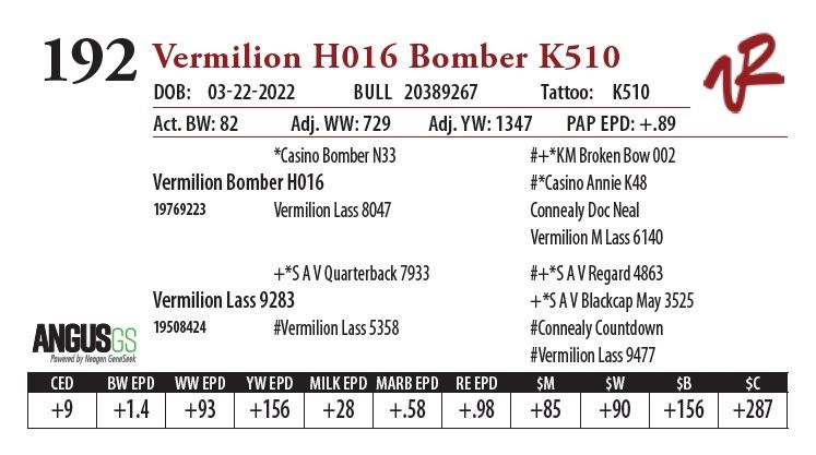 All bulls will be covered 50% by Vermilion Ranch if they are injured during their first breeding season. Breeding season is defined as the 60-day period following the first turnout of bulls.
