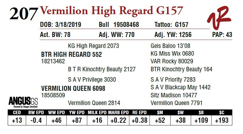 All bulls will be covered 50% by Vermilion Ranch if they are injured during their first breeding season. Breeding season is defined as the 60-day period following the first turnout of bulls.