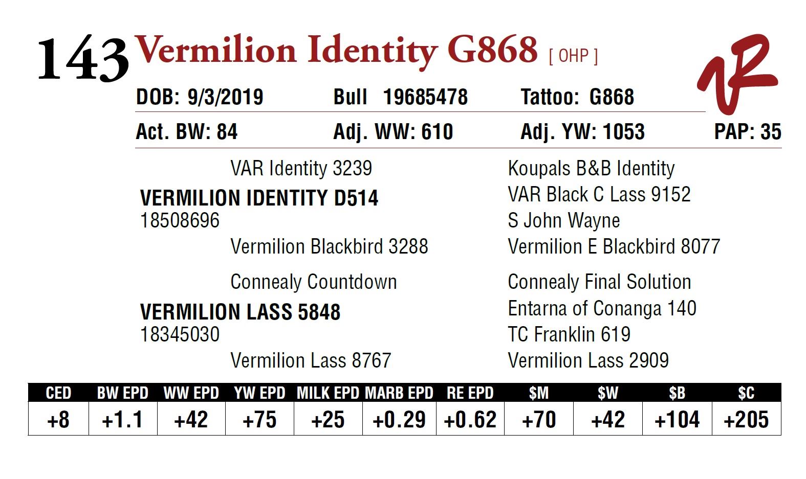 All bulls will be covered 50% by Vermilion Ranch if they are injured during their first breeding season. Breeding season is defined as the 60-day period following the first turnout of bulls.
