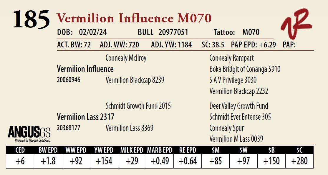 All bulls will be covered 50% by Vermilion Ranch if they are injured during their first breeding season. Breeding season is defined as the 60-day period following the first turnout of bulls.