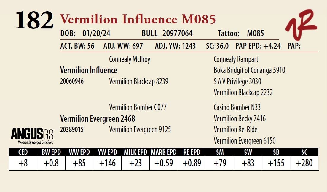 All bulls will be covered 50% by Vermilion Ranch if they are injured during their first breeding season. Breeding season is defined as the 60-day period following the first turnout of bulls.
