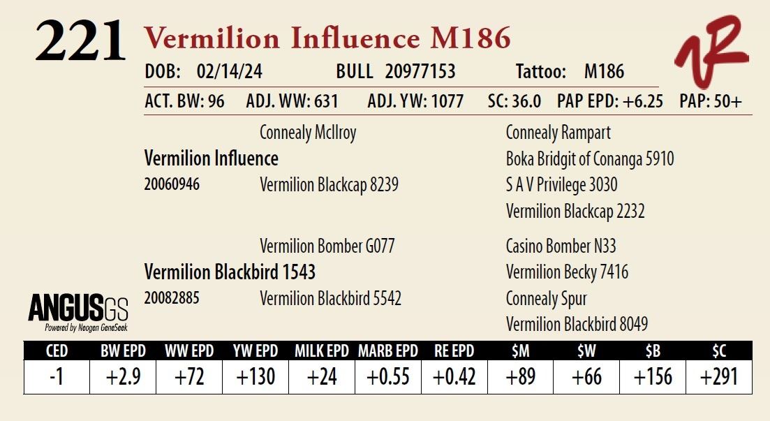 All bulls will be covered 50% by Vermilion Ranch if they are injured during their first breeding season. Breeding season is defined as the 60-day period following the first turnout of bulls.