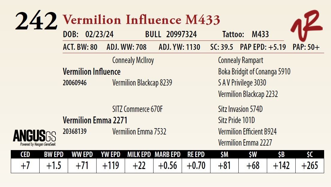 All bulls will be covered 50% by Vermilion Ranch if they are injured during their first breeding season. Breeding season is defined as the 60-day period following the first turnout of bulls.