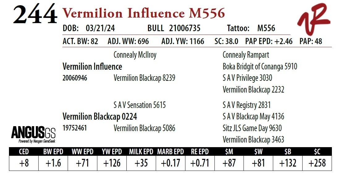 All bulls will be covered 50% by Vermilion Ranch if they are injured during their first breeding season. Breeding season is defined as the 60-day period following the first turnout of bulls.