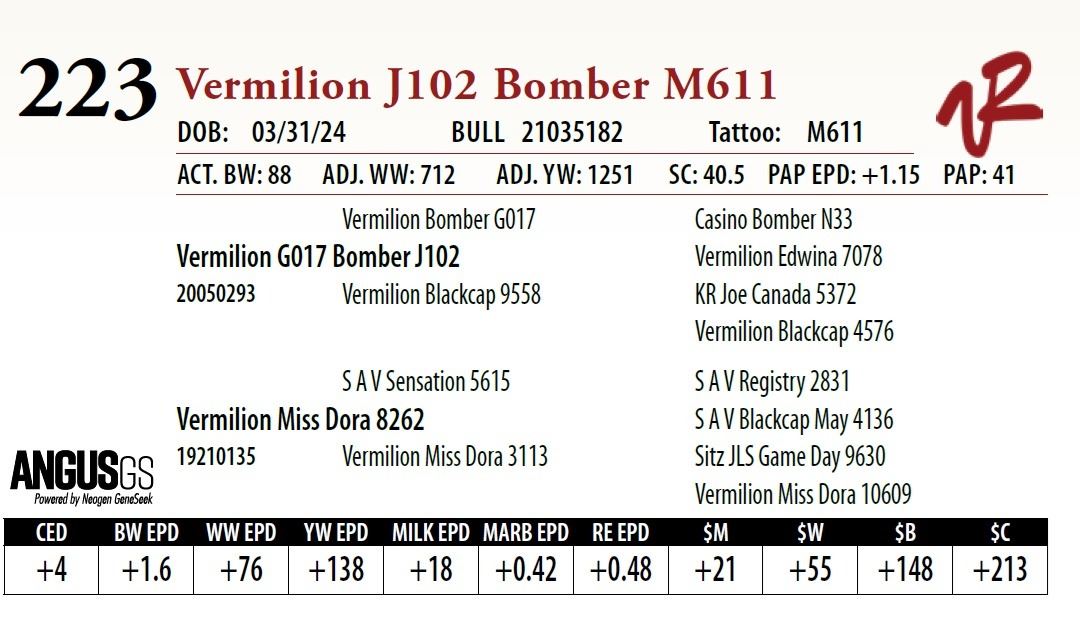 All bulls will be covered 50% by Vermilion Ranch if they are injured during their first breeding season. Breeding season is defined as the 60-day period following the first turnout of bulls.