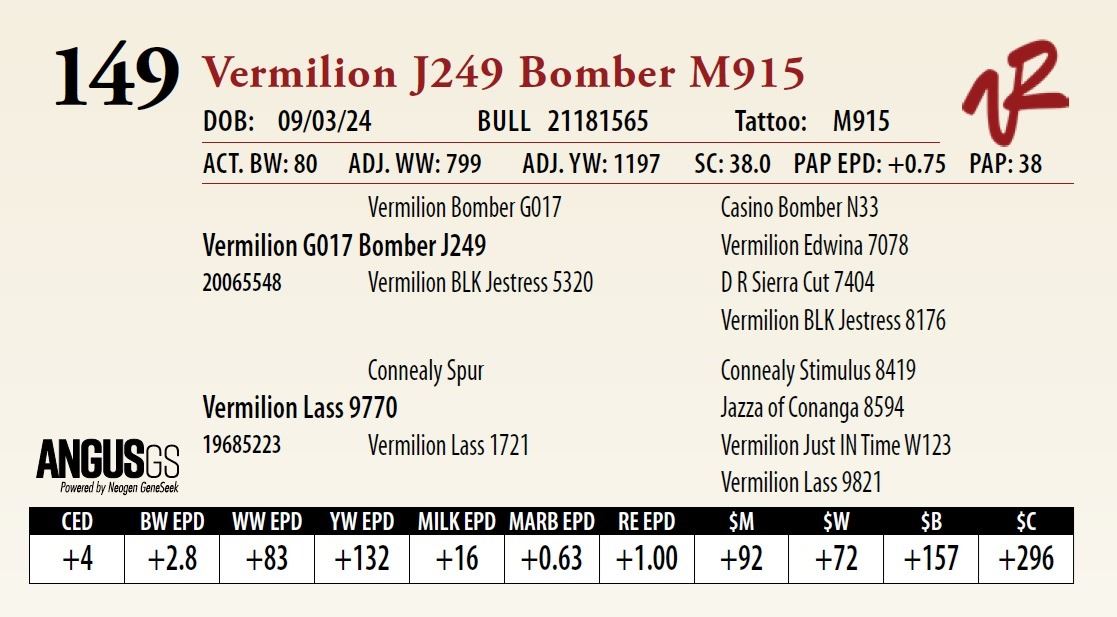 All bulls will be covered 50% by Vermilion Ranch if they are injured during their first breeding season. Breeding season is defined as the 60-day period following the first turnout of bulls.