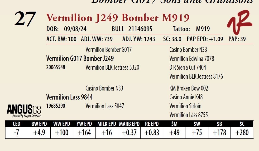 All bulls will be covered 50% by Vermilion Ranch if they are injured during their first breeding season. Breeding season is defined as the 60-day period following the first turnout of bulls.