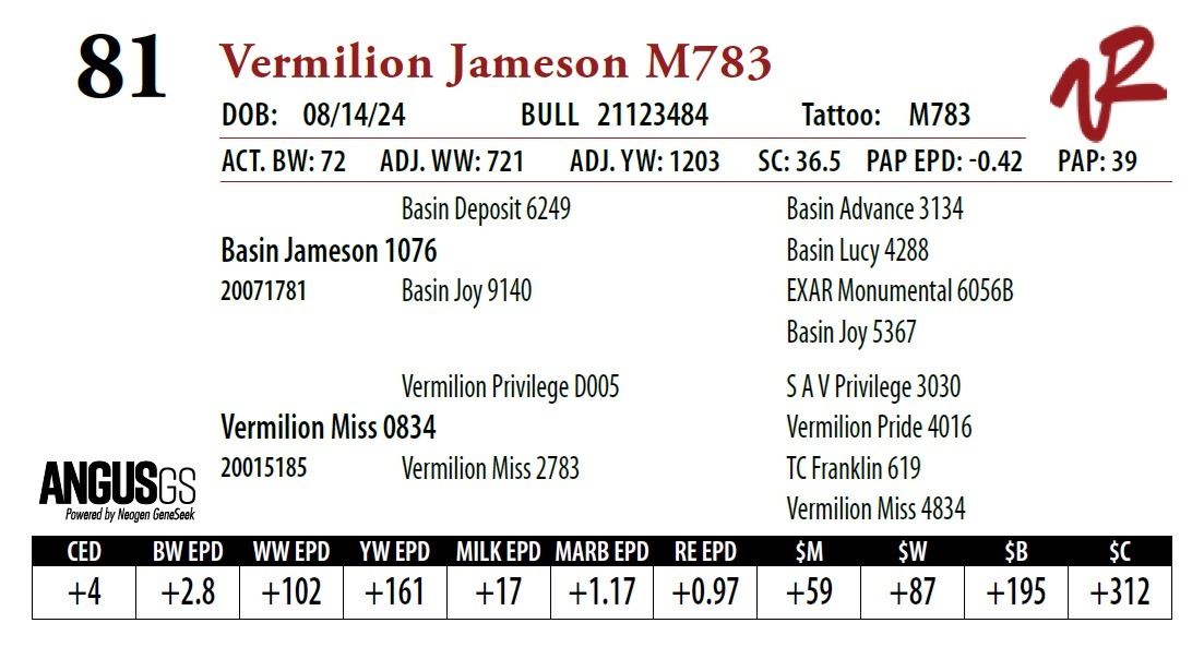 All bulls will be covered 50% by Vermilion Ranch if they are injured during their first breeding season. Breeding season is defined as the 60-day period following the first turnout of bulls.