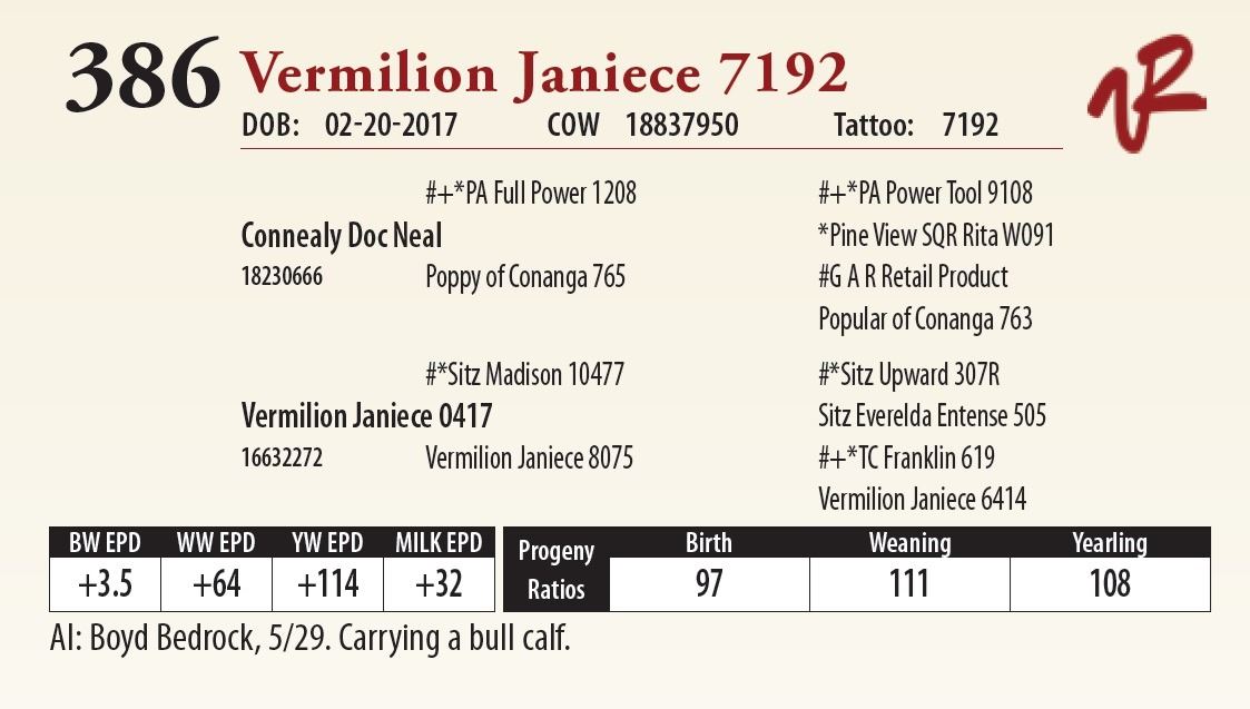 All bulls will be covered 50% by Vermilion Ranch if they are injured during their first breeding season. Breeding season is defined as the 60-day period following the first turnout of bulls.