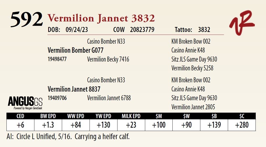 All bulls will be covered 50% by Vermilion Ranch if they are injured during their first breeding season. Breeding season is defined as the 60-day period following the first turnout of bulls.