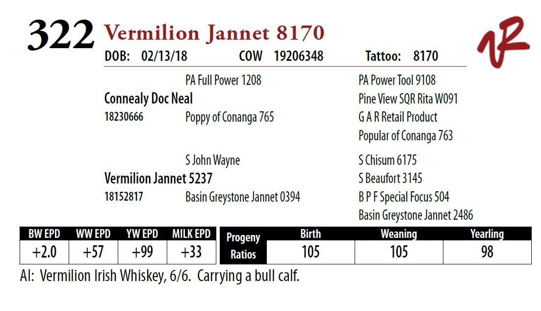 All bulls will be covered 50% by Vermilion Ranch if they are injured during their first breeding season. Breeding season is defined as the 60-day period following the first turnout of bulls.