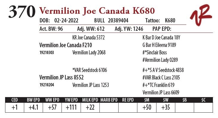 All bulls will be covered 50% by Vermilion Ranch if they are injured during their first breeding season. Breeding season is defined as the 60-day period following the first turnout of bulls.
