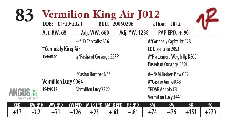 All bulls will be covered 50% by Vermilion Ranch if they are injured during their first breeding season. Breeding season is defined as the 60-day period following the first turnout of bulls.