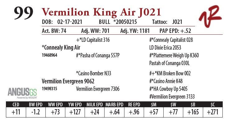 All bulls will be covered 50% by Vermilion Ranch if they are injured during their first breeding season. Breeding season is defined as the 60-day period following the first turnout of bulls.